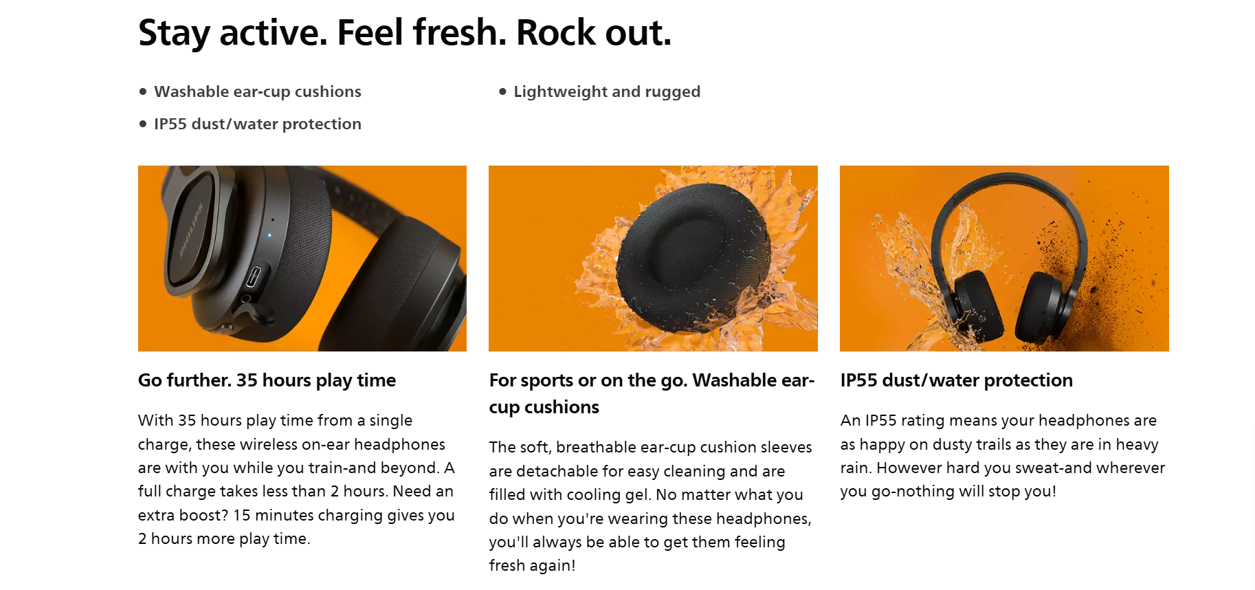 Philips Wireless Sport Headphones (TAA4216BK/00) 40mm,BT 5.0, Built in Mic, Headphone Socket 3.5mm, Black