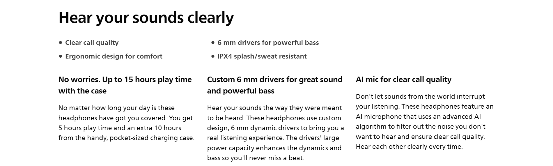 Philips Earphones with Mic (TAE1126BK/97) Dynamic bass, 10mm drivers, integrated microphone and call button, 3 interchangeable earcups, 1.2m Cable, Black