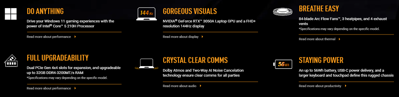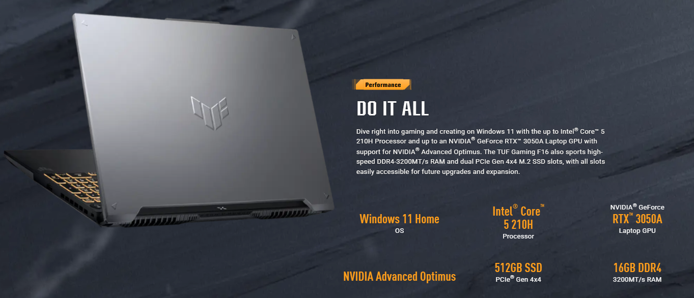 Intel® Core™ 5 Processor 210H, 8GB DDR4,NVIDIA® GeForce RTX™ 3050 Laptop GPU,6GB GDDR6, 512GB NVME 4.0, 16-inch