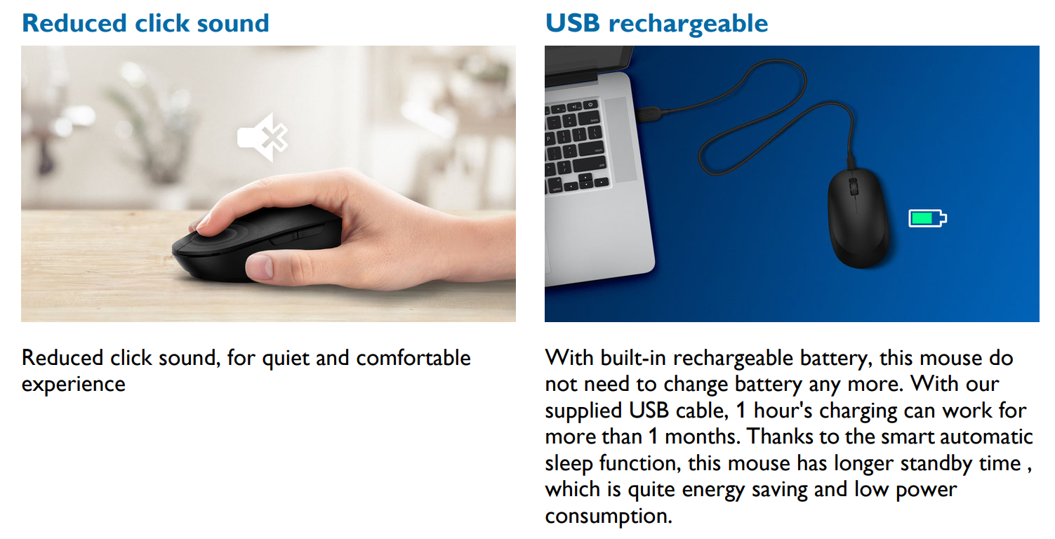 Mouse Wireless Philips SPK7528 2.4G+BT dual mode Black