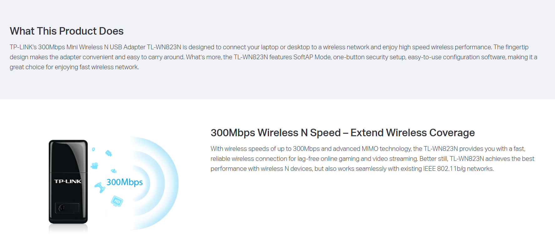 TP-Link Wireless Usb Adapter 300Mbps (WN823N)