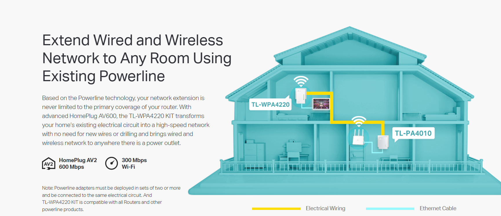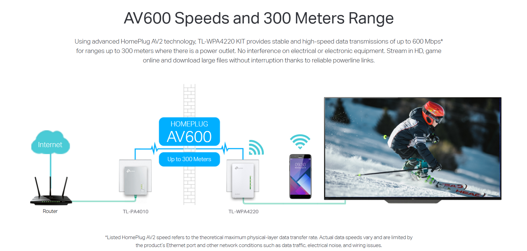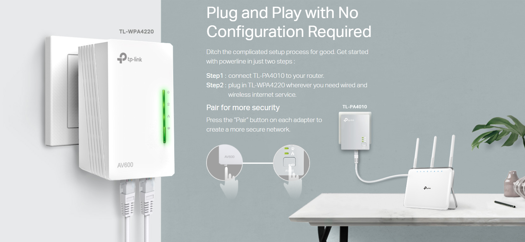 TP-Link Powerline WIFI Kit AV600  (WPA4220-KIT)