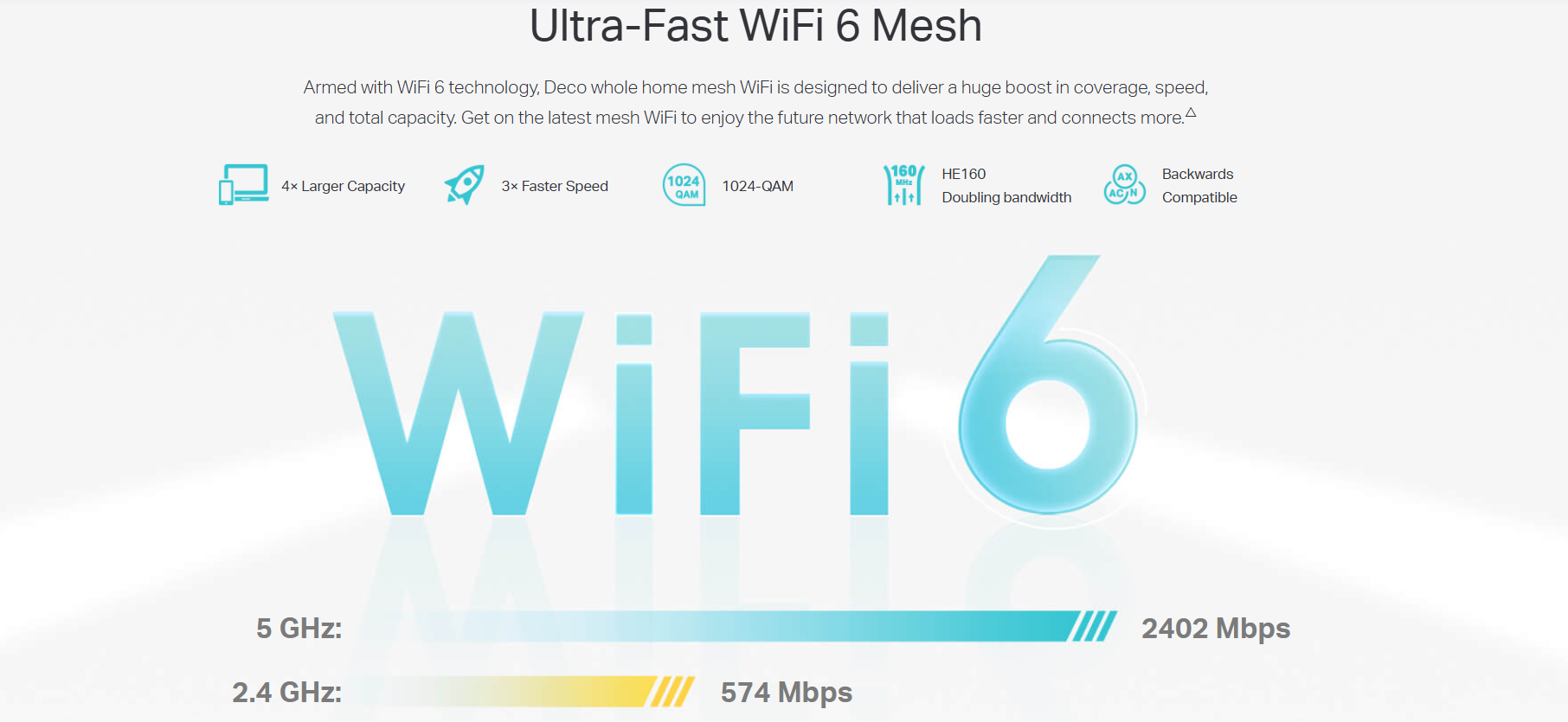 - 4 Streams, Less Lag - 2×2/HE160 2402 Mbps + 2×2 574 Mbps