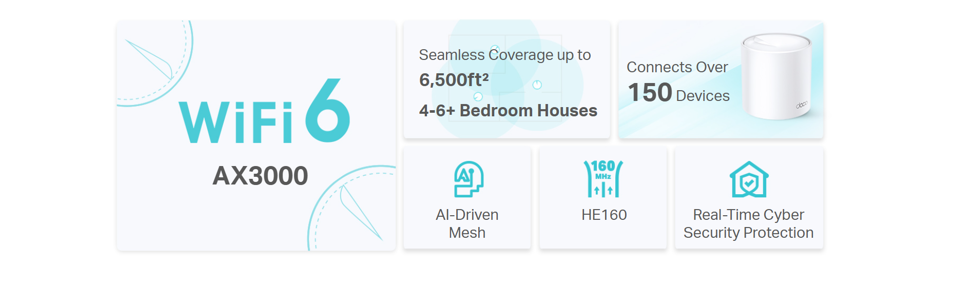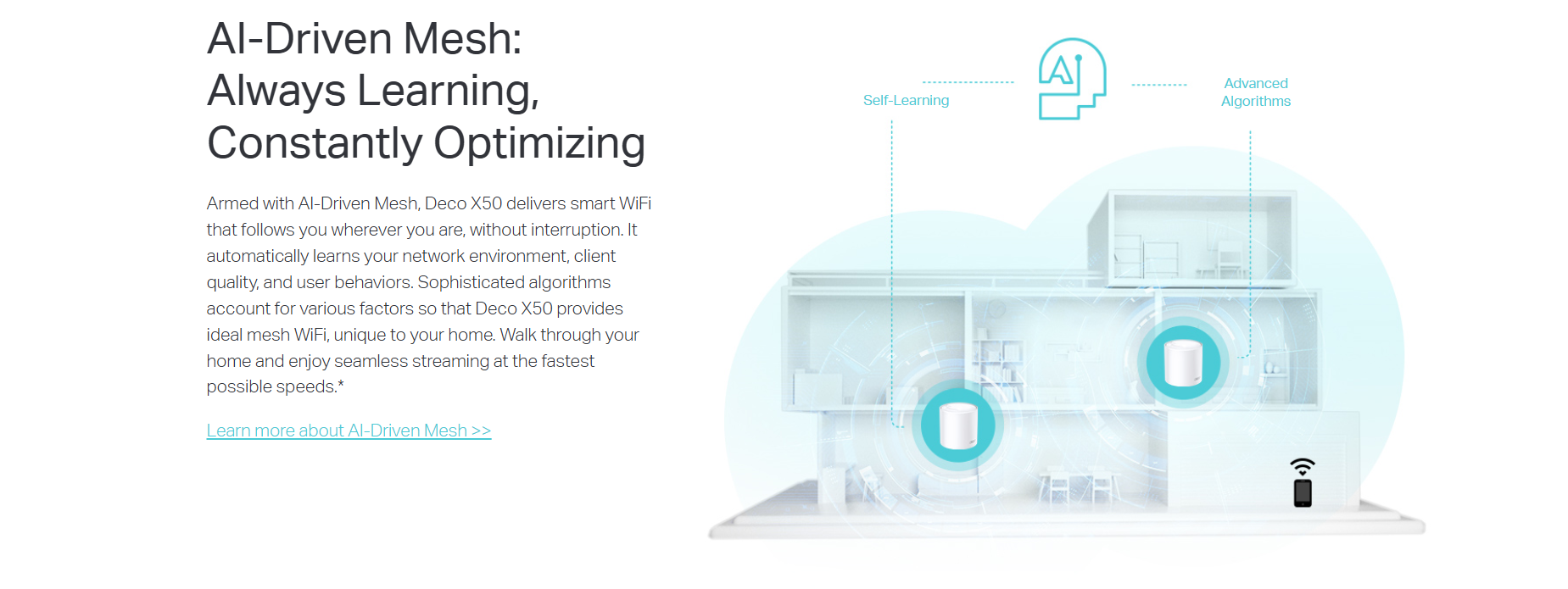 - AI-Driven Mesh - Intelligently learns the network environment to provide ideal WiFi unique to your home
