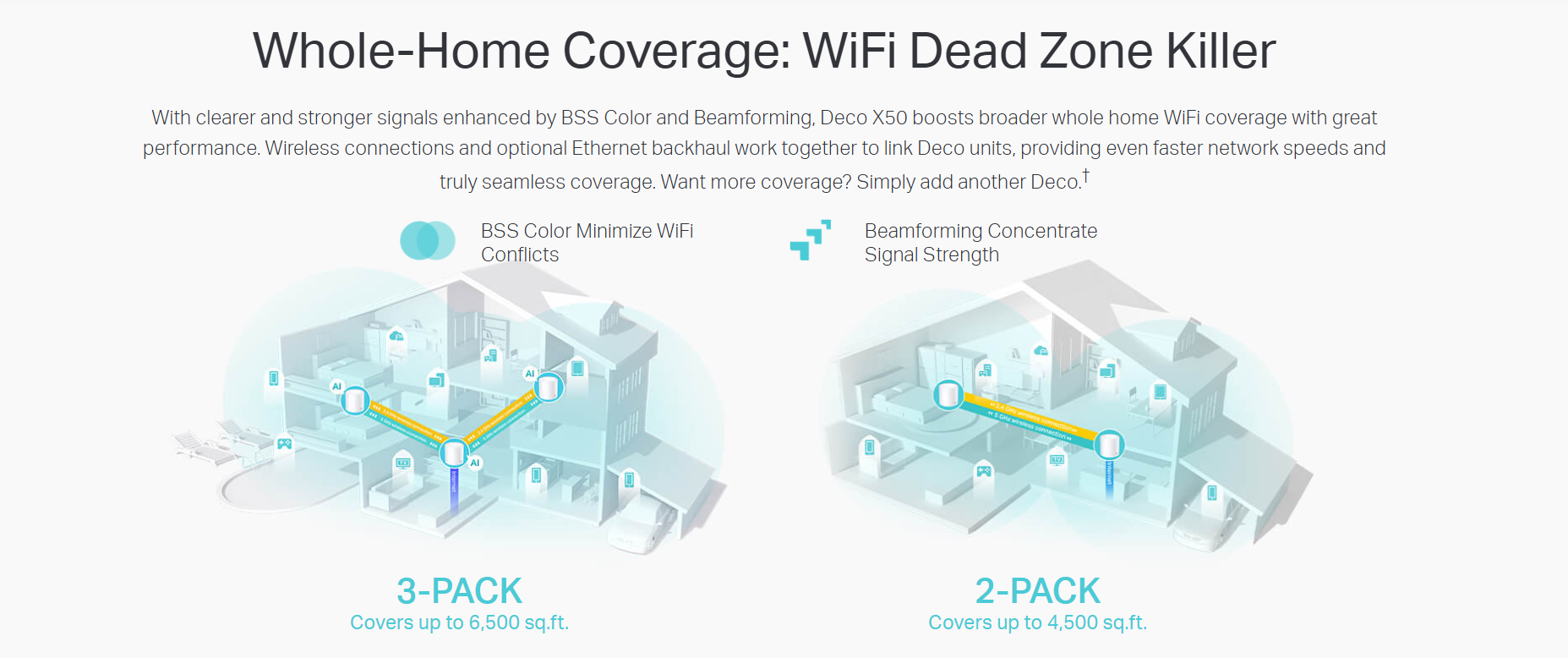 - Boosted Seamless Coverage - Seamless mesh WiFi coverage up to 6,500 ft2 (3-pack)