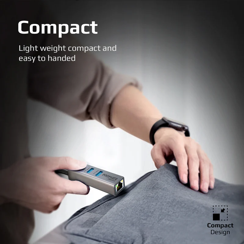 Promate Multi-Port USB-C Hub with Ethernet Adapter (USB 3.0 Ports, 5Gbps Sync, 1000Mbps Ethernet as icons)  GIGAHUB-C